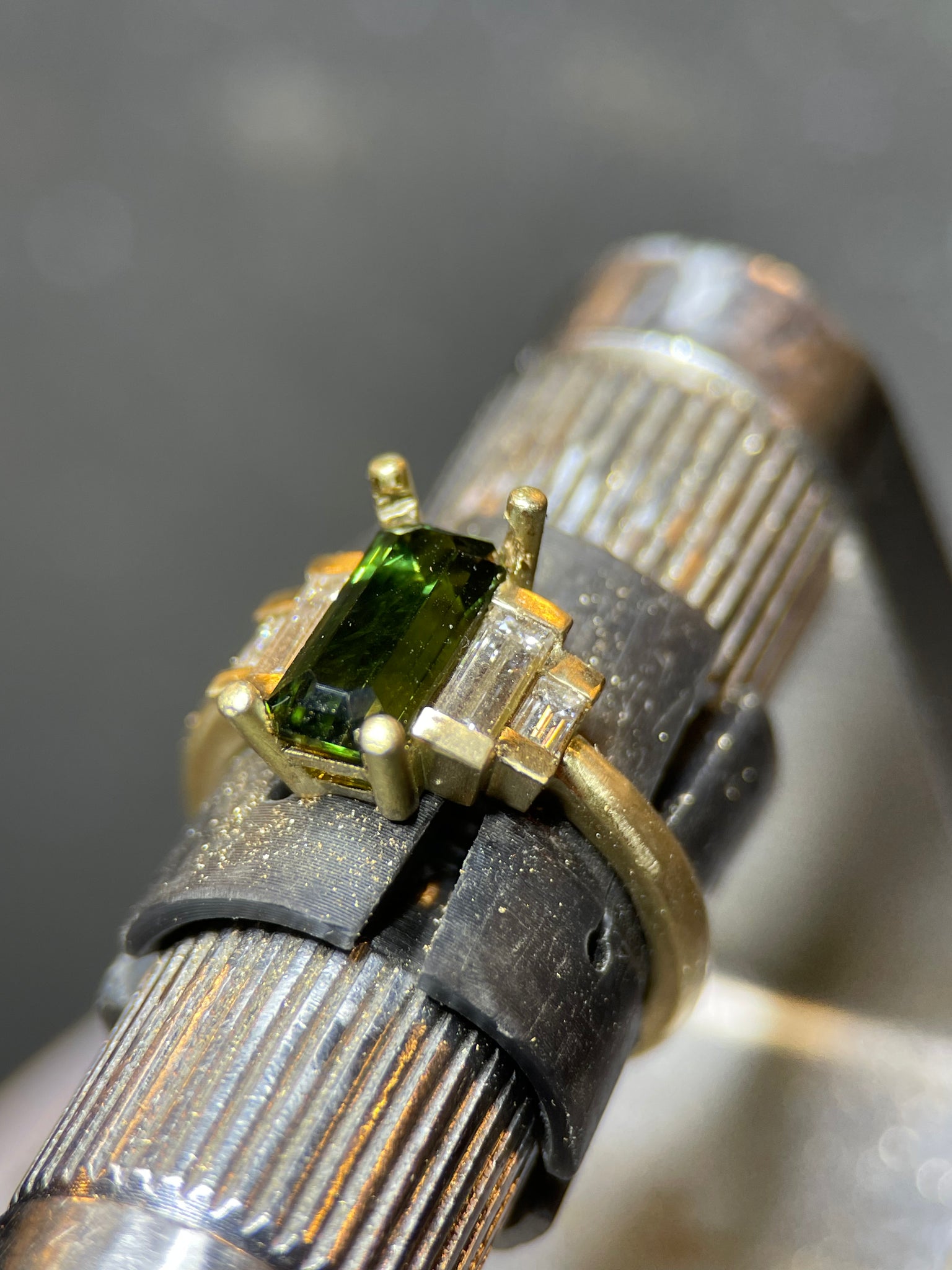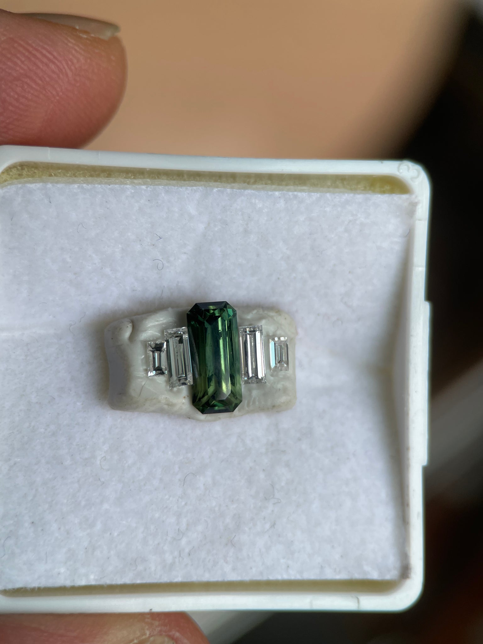 In particular Alicia was looking for a vibrant green Australian sapphire with longer, narrower proportions that suited ring size.