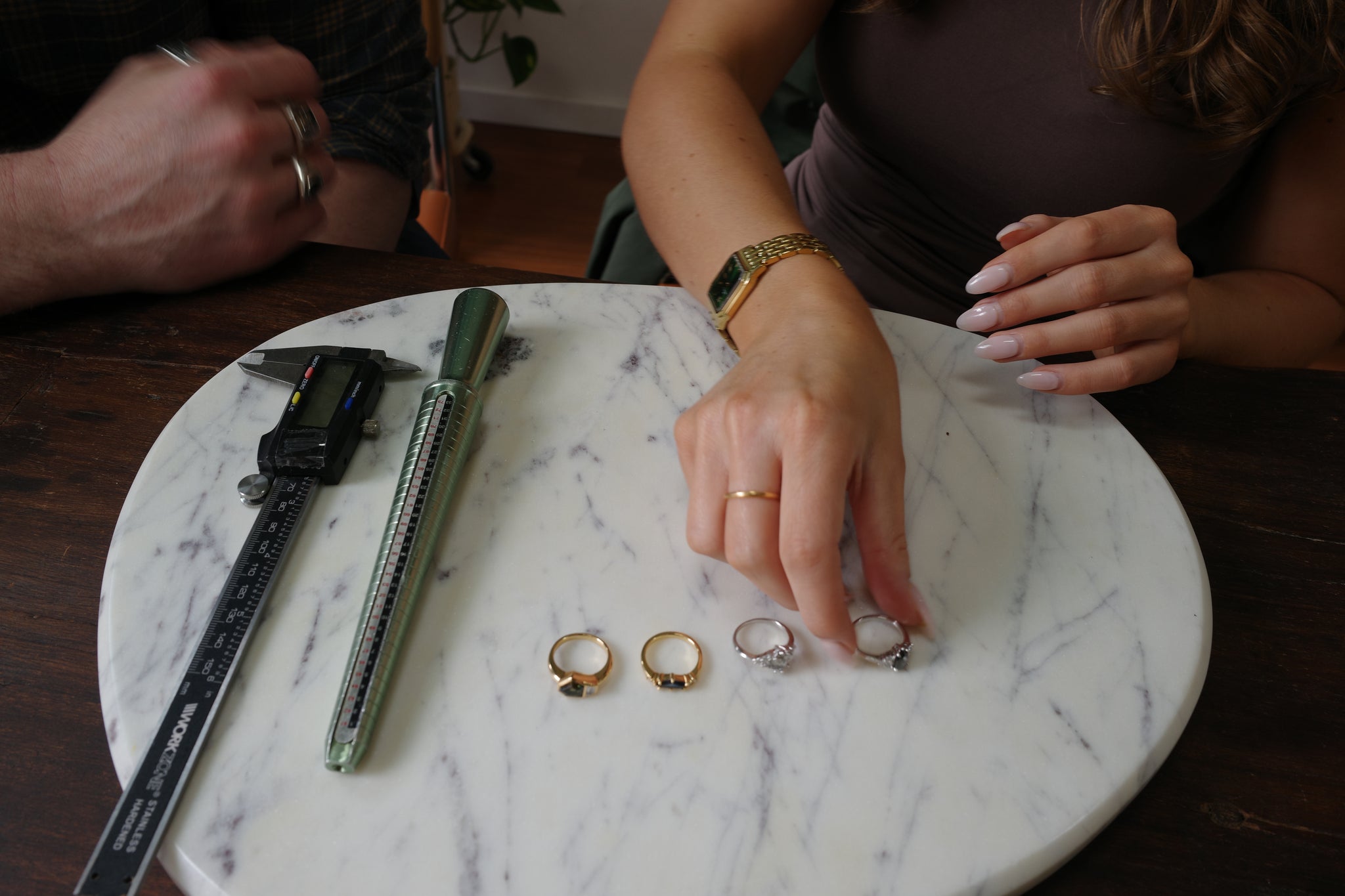 Each commission includes complimentary ring sizers and resizing after purchase if required, so your ring fits perfectly. Finished pieces are delivered securely by DHL, wherever you are.